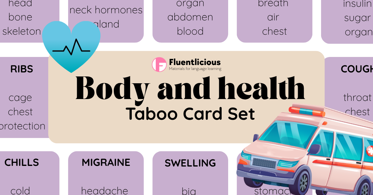 Teaching health vocabulary doesn’t have to be boring. This Health & Body Taboo set helps students practice real-life English—symptoms, illnesses, and doctor visits—through a fun, interactive speaking game.